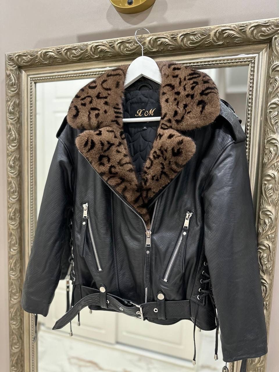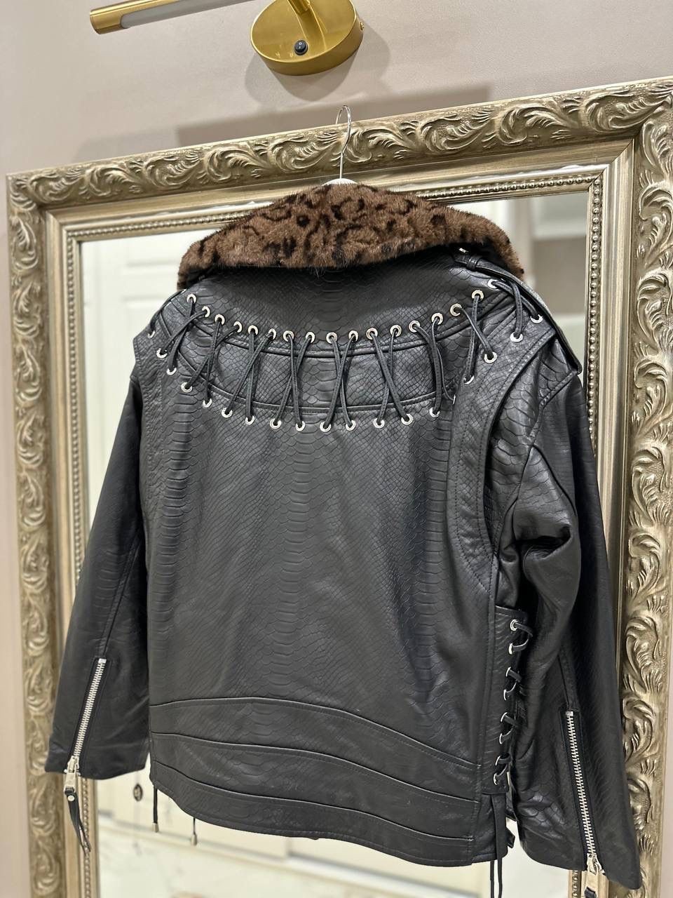 Представляем вам нашу черную кожаную куртку, которая станет неотъемлемой частью вашего гардероба. Эта уникальная куртка выполнена из высококачественной кожи с эффектным тиснением под рептилию.