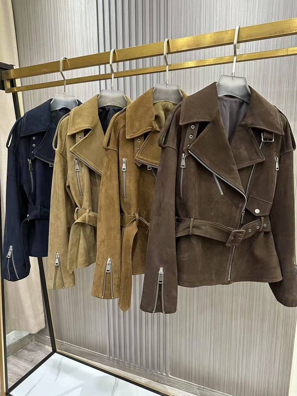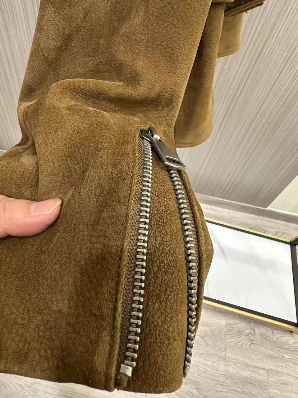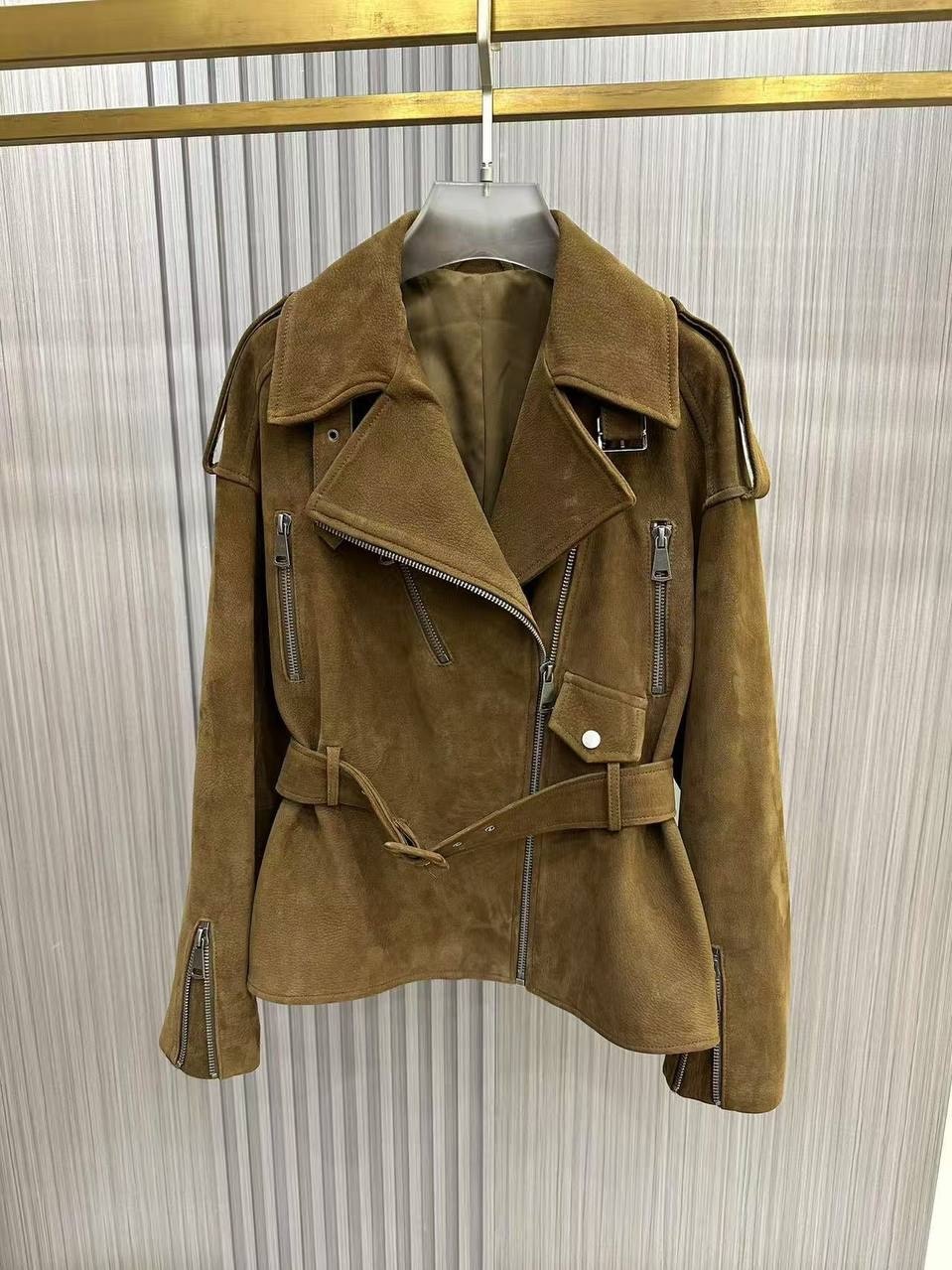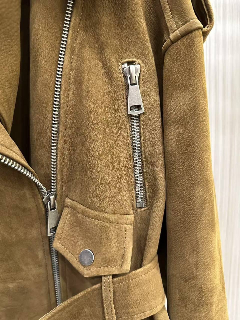 Кожаный приталенный жакет с посом «горчица»