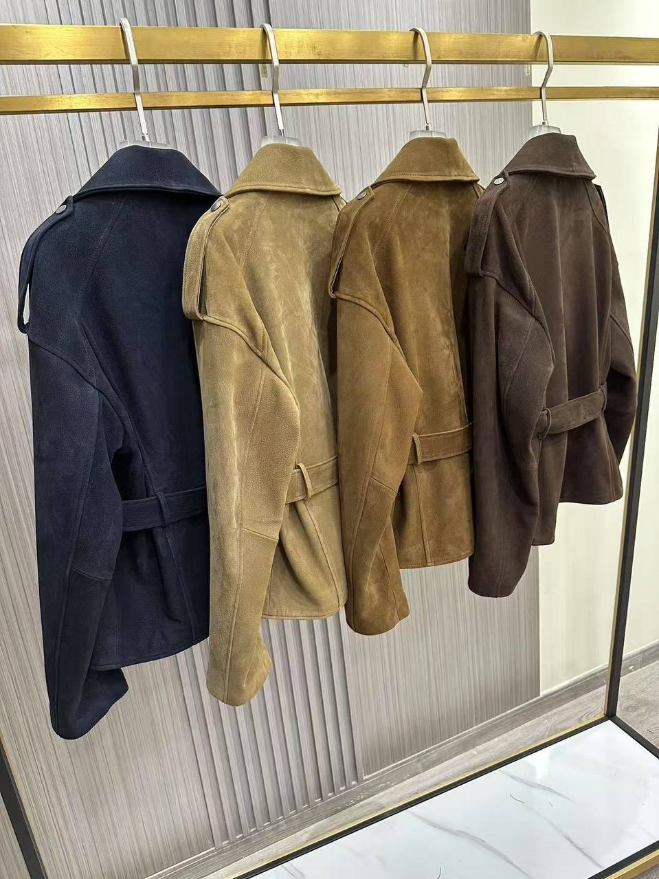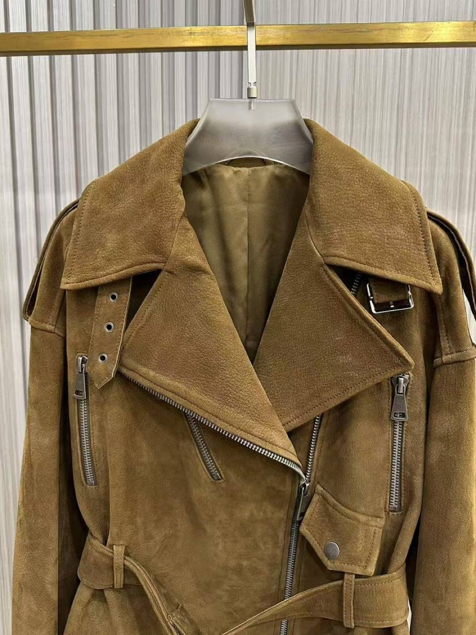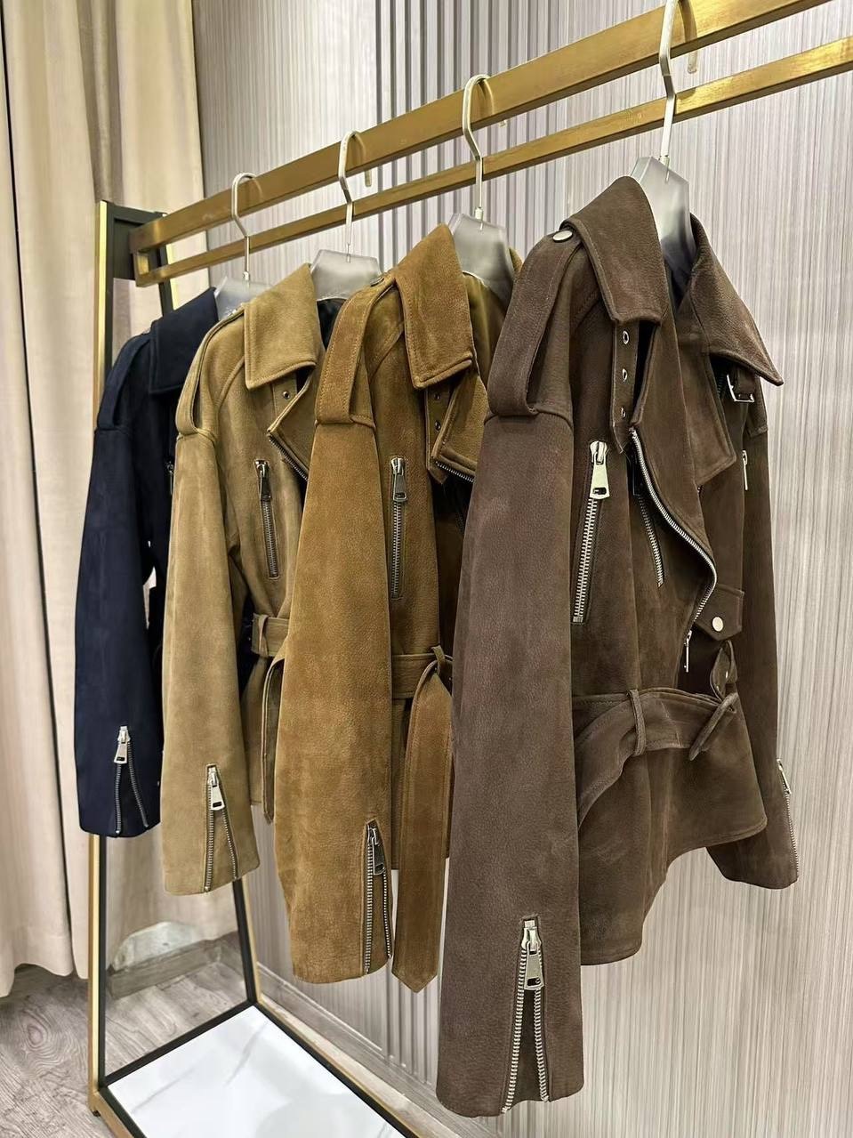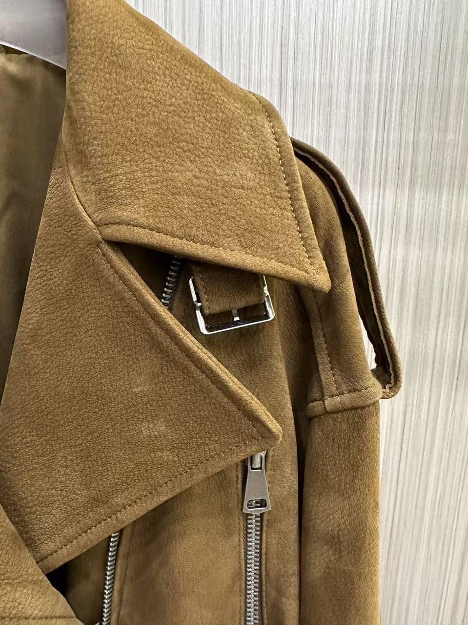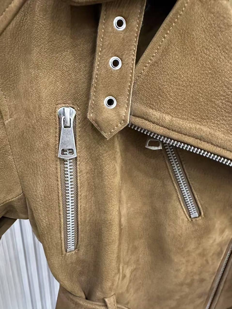 Кожаный приталенный жакет с посом «горчица»