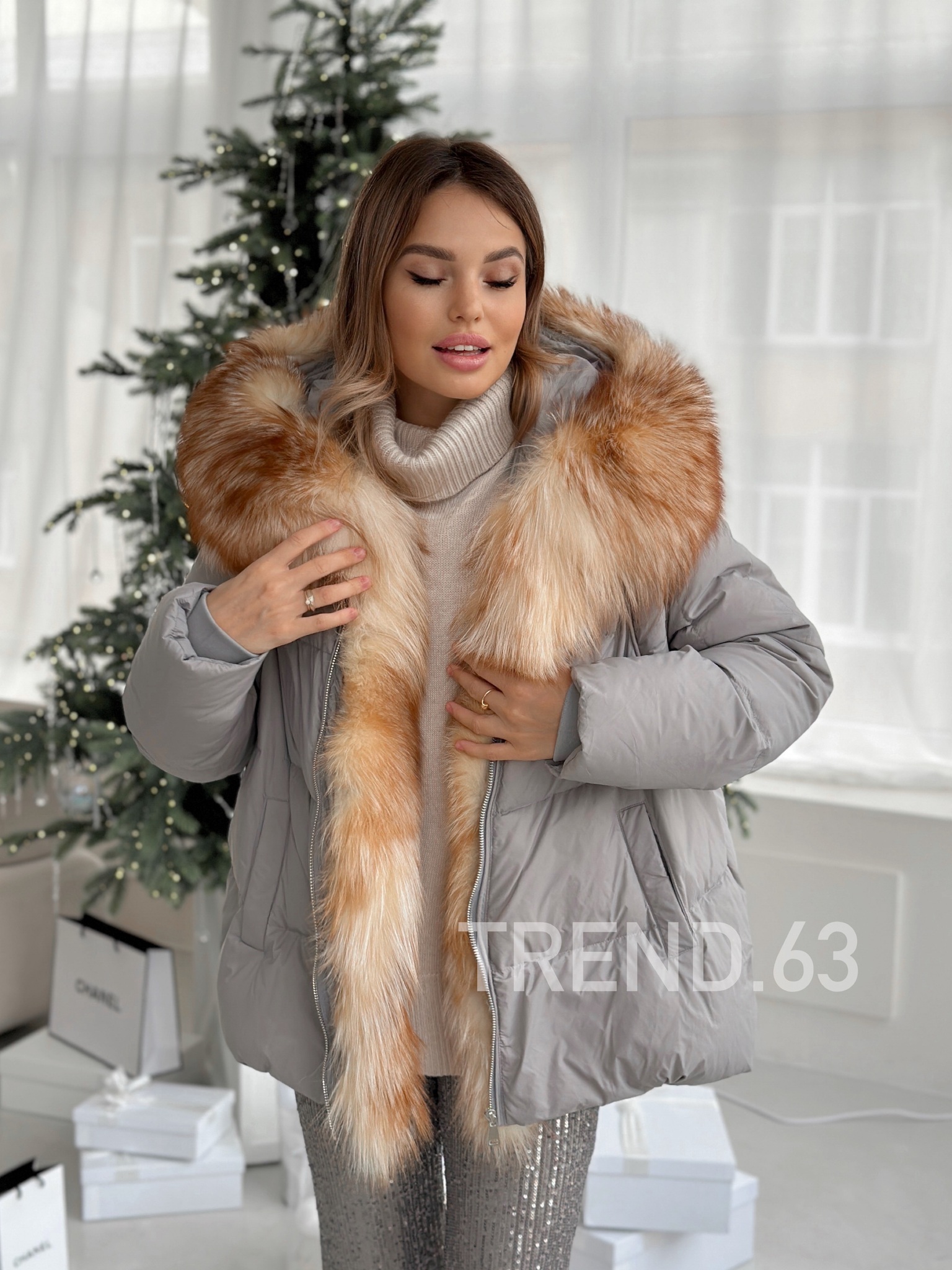 Состав: 90% пух, 10% перо. -100% натуральный мех лисы; -мех съемный, можно носить мехом наружу (есть фиксаторы); -застежка - молния; -карманы прорезные; капюшон; модель - бомбер; длина 73-78 см.