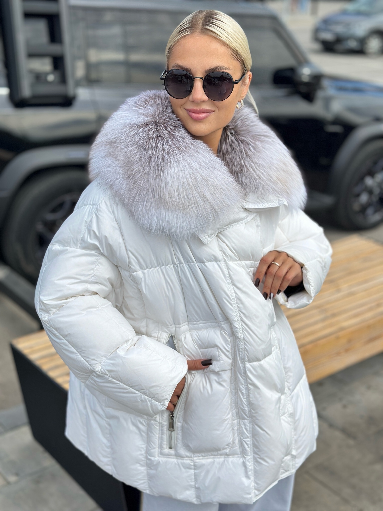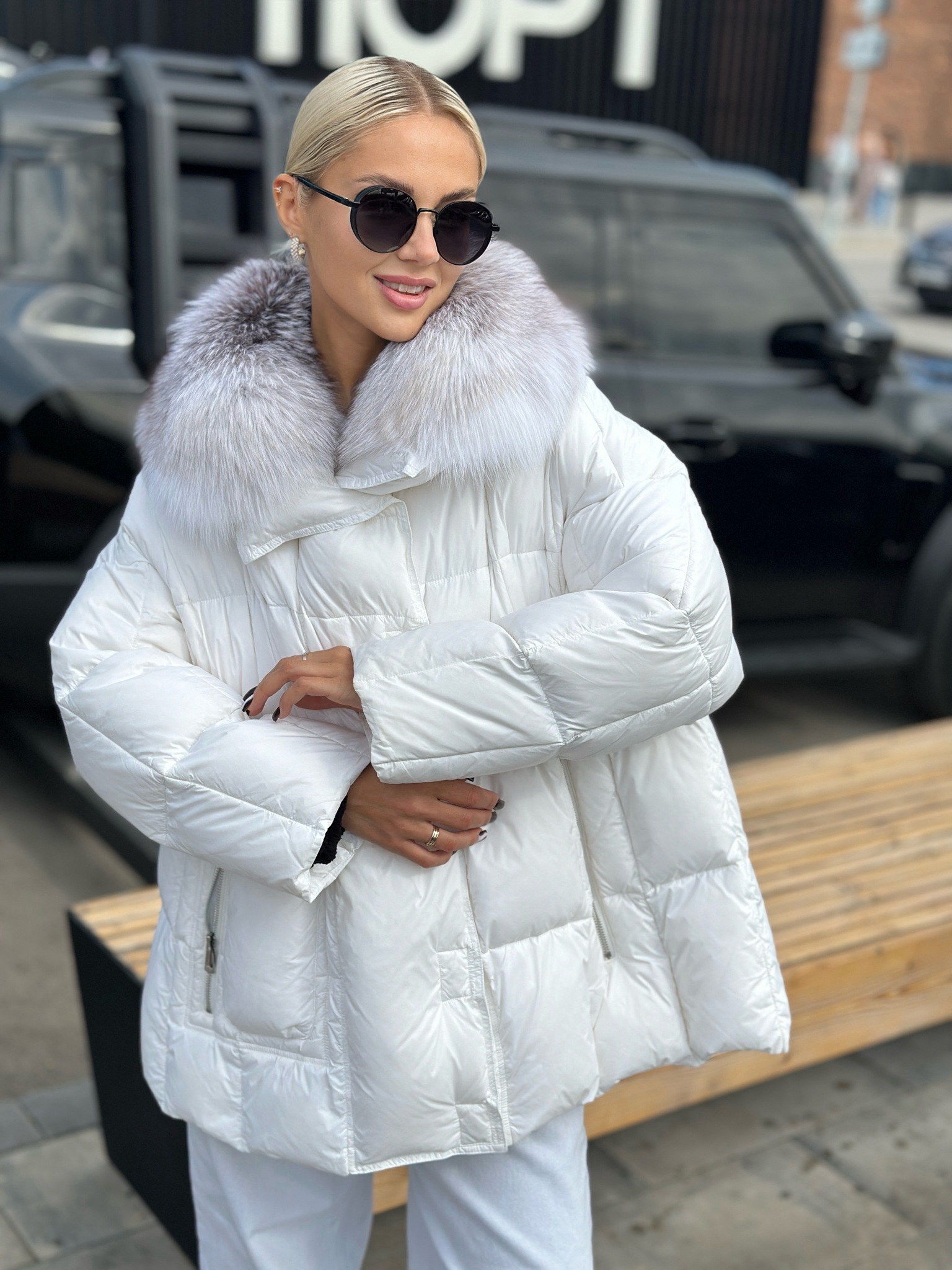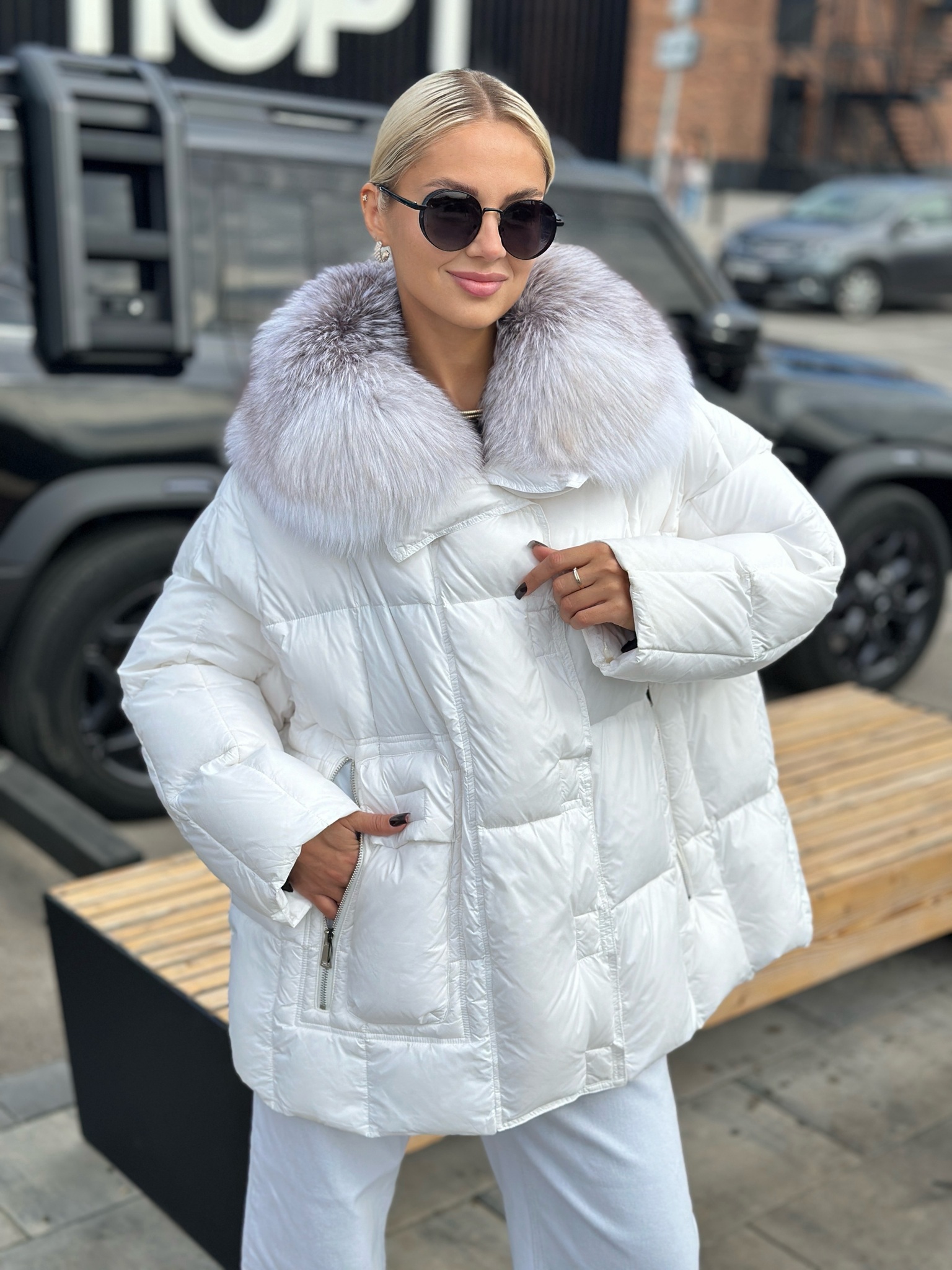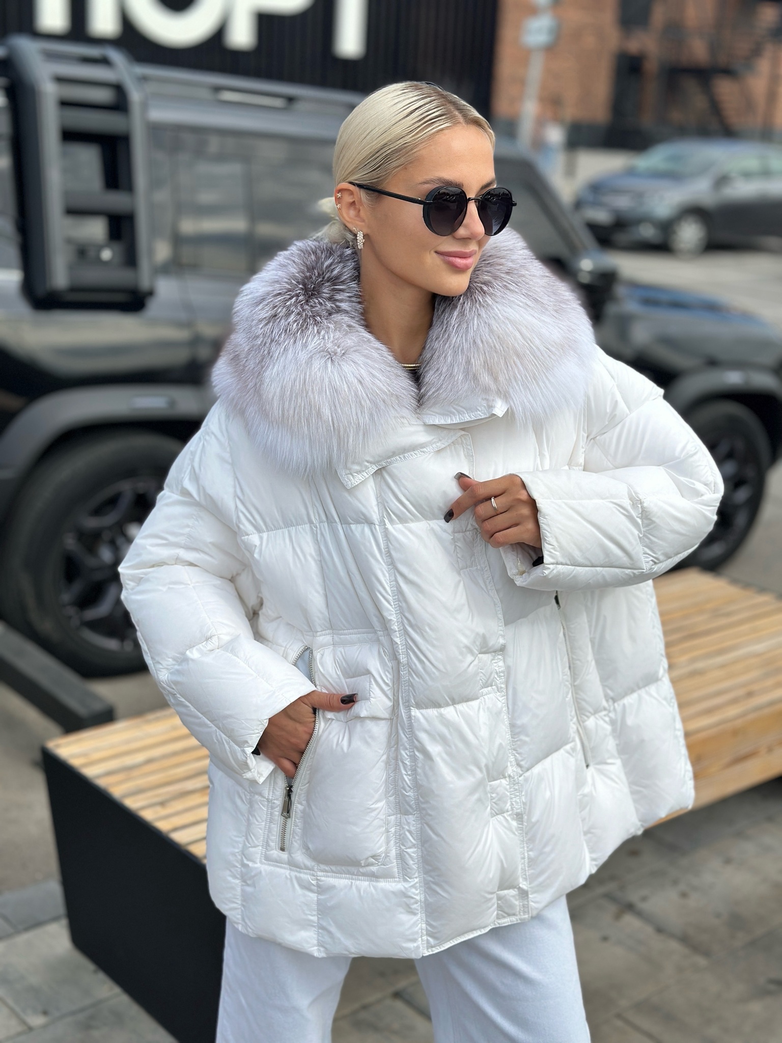 Пуховик - одеялко оверсайз 42-54 с мехом арктической лисы