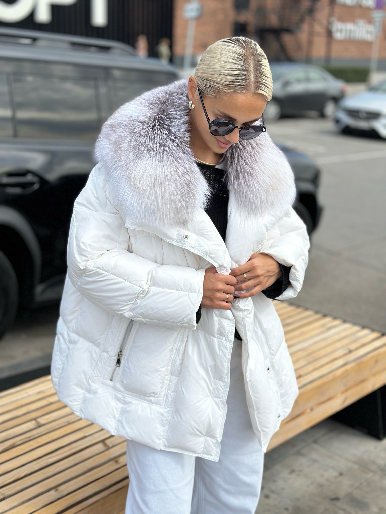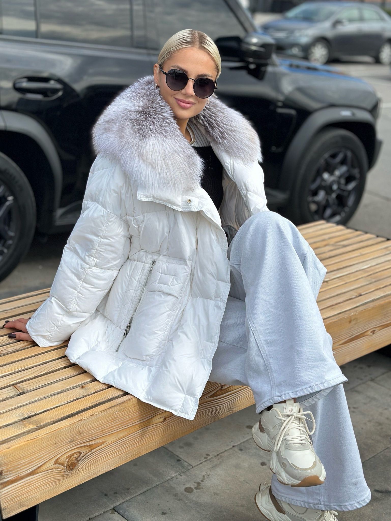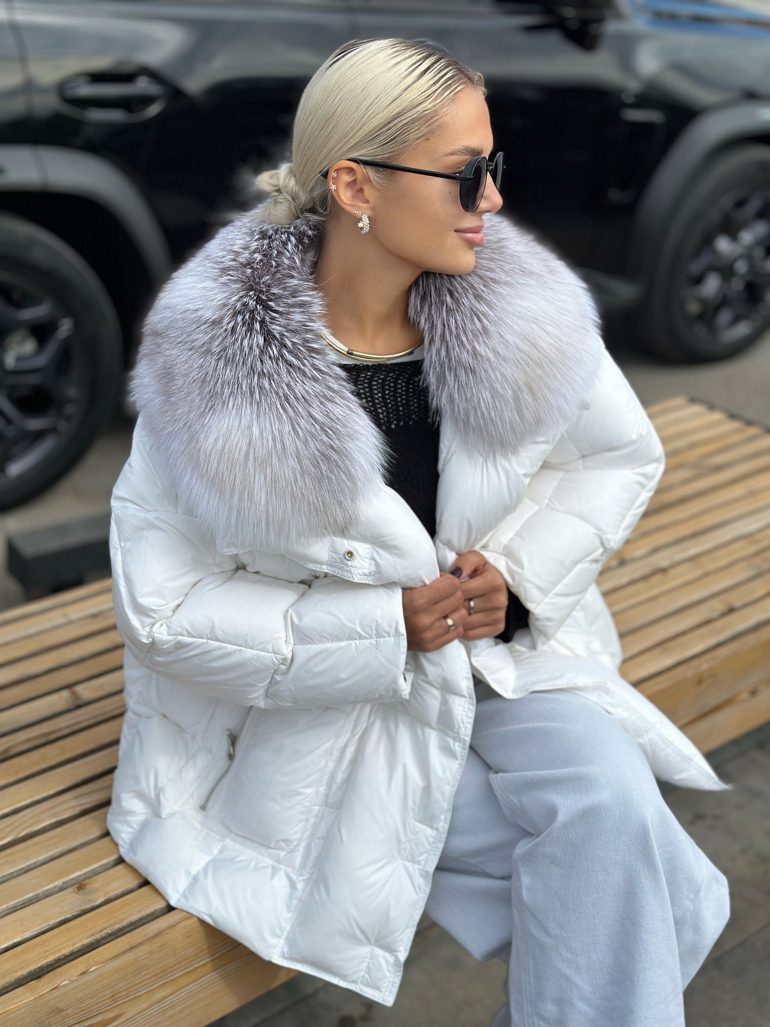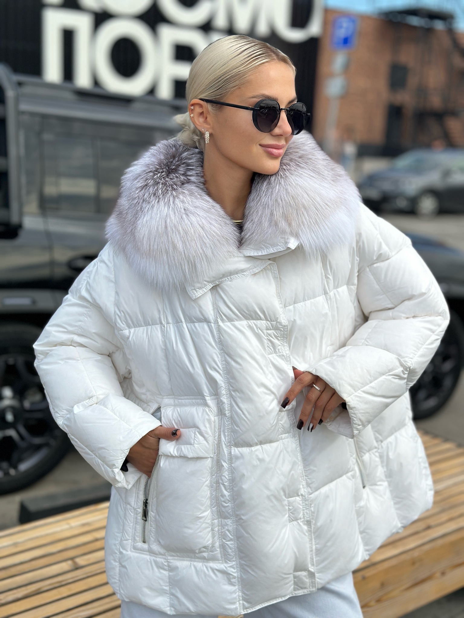 Пуховик - одеялко оверсайз 42-54 с мехом арктической лисы