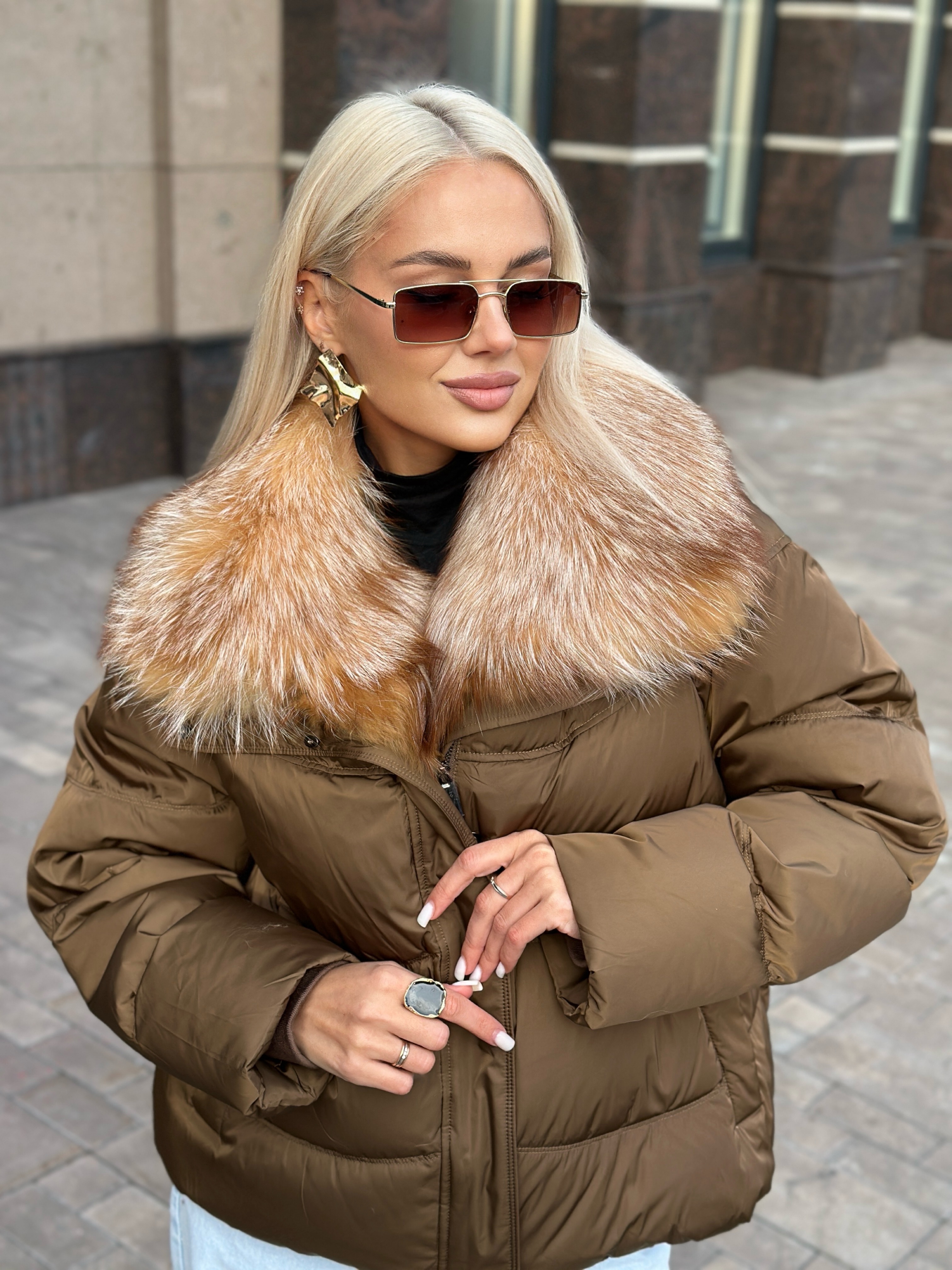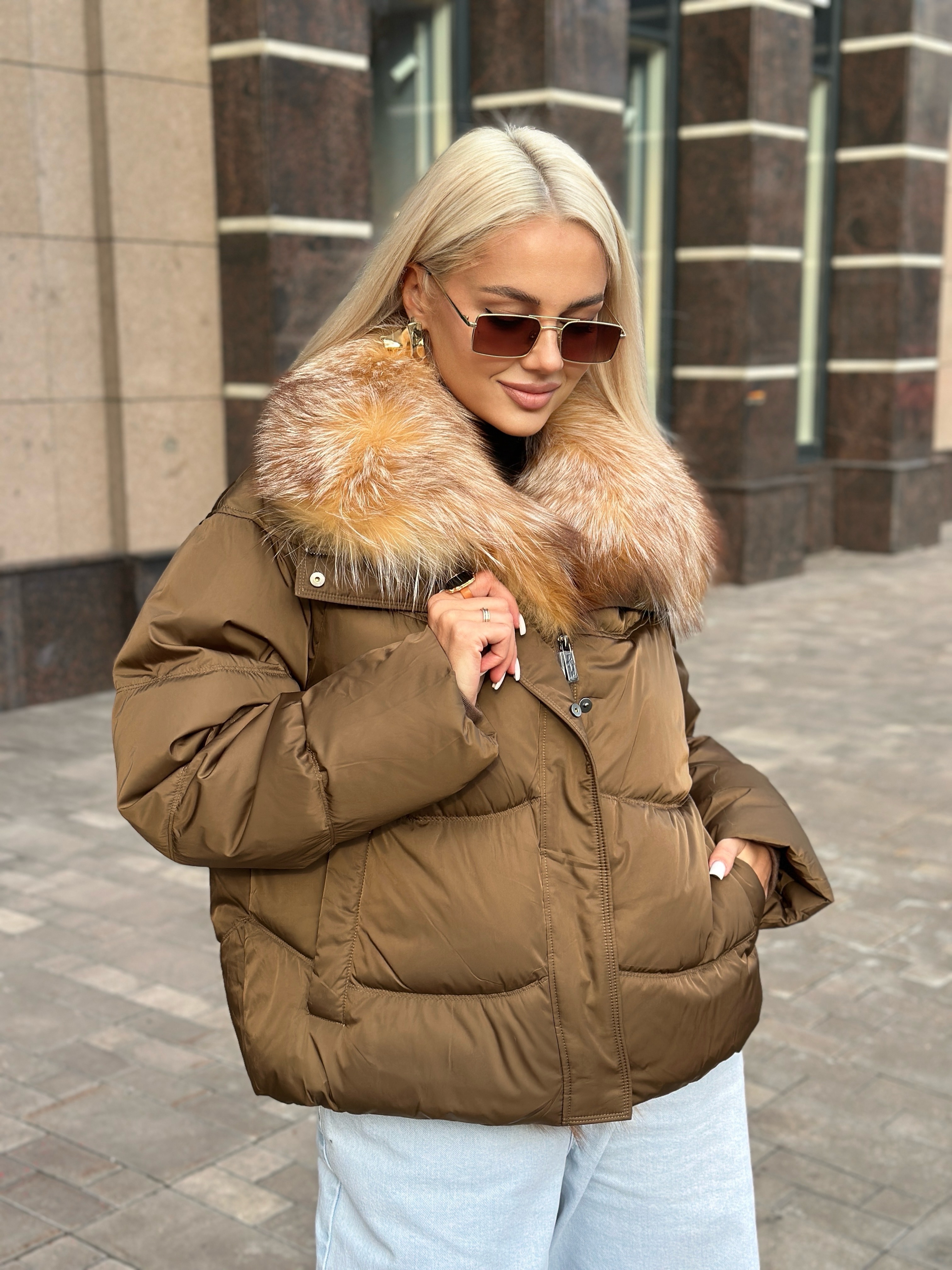 Пуховик с мехом лисы «огневки» 50см