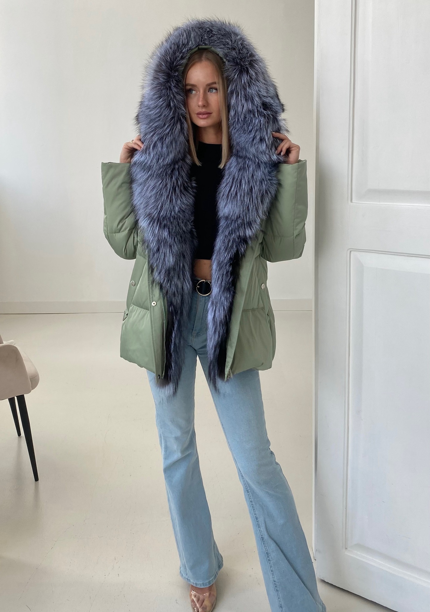 Состав: наполнитель -90% пух, 10% перо; опушка на капюшоне и бортах-100% натуральный мех чернобурки.