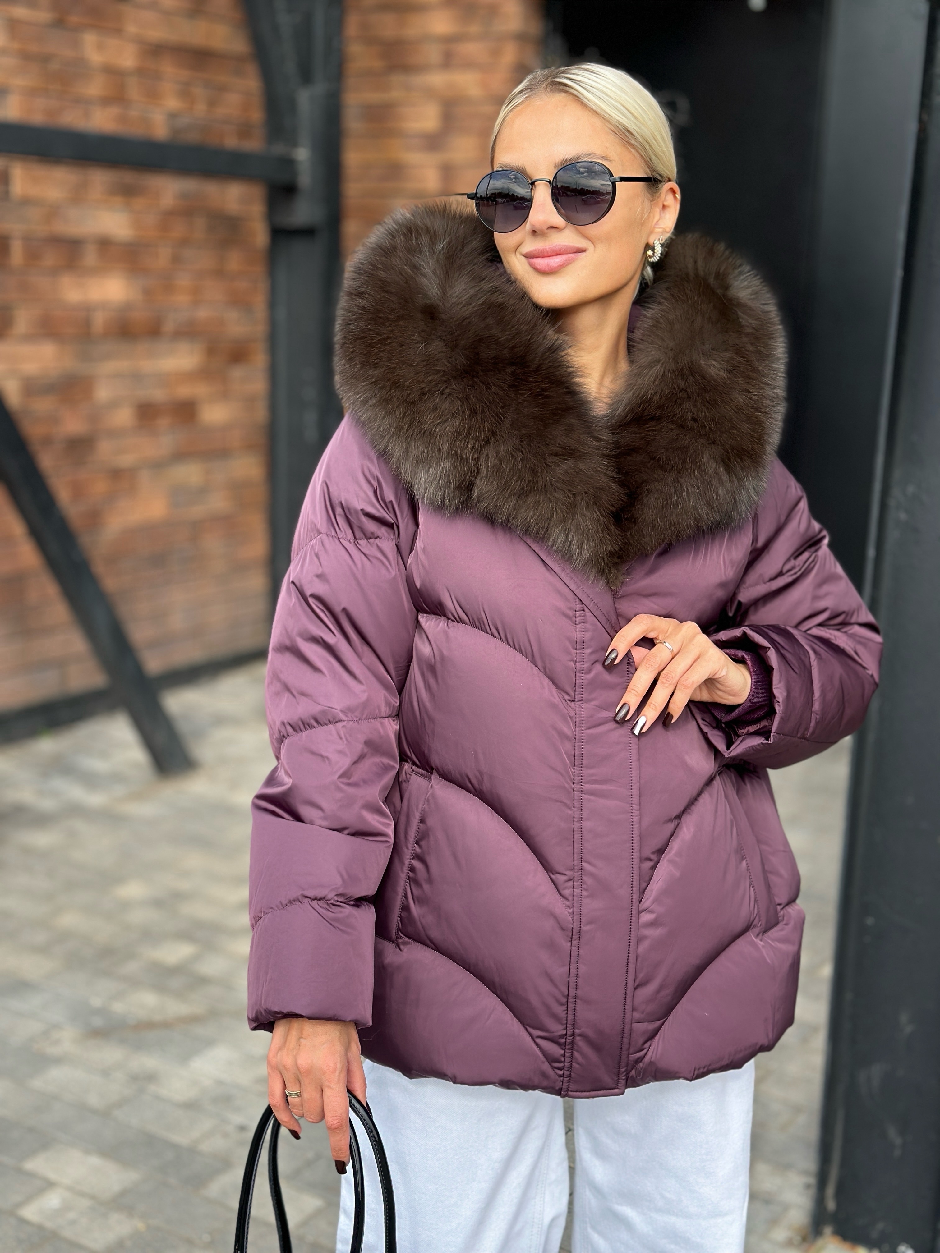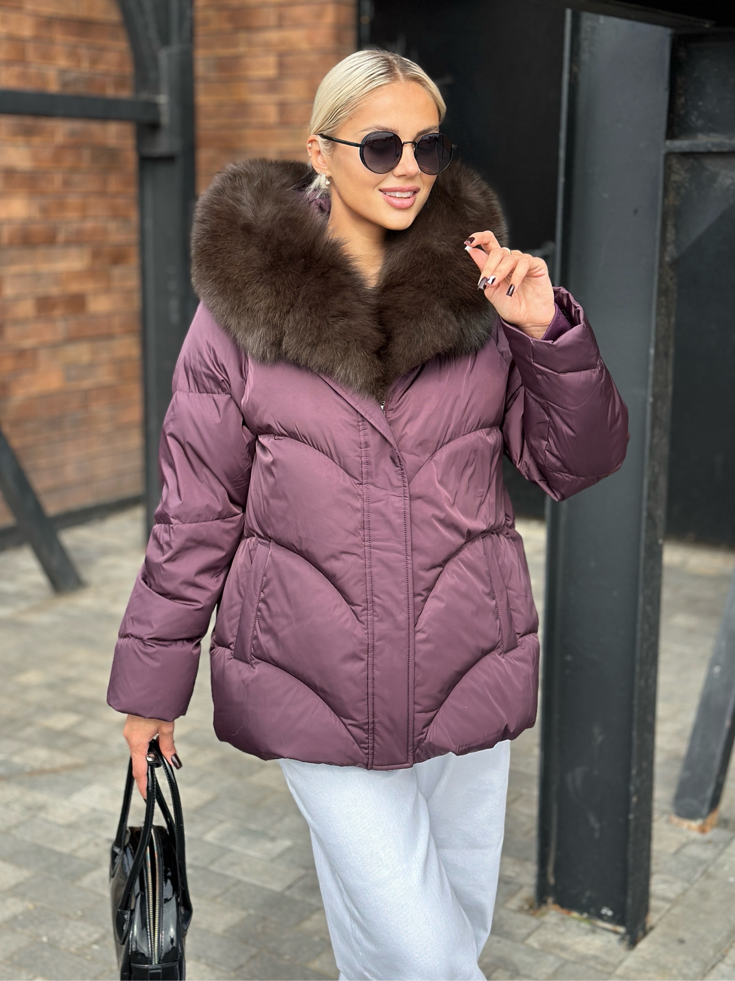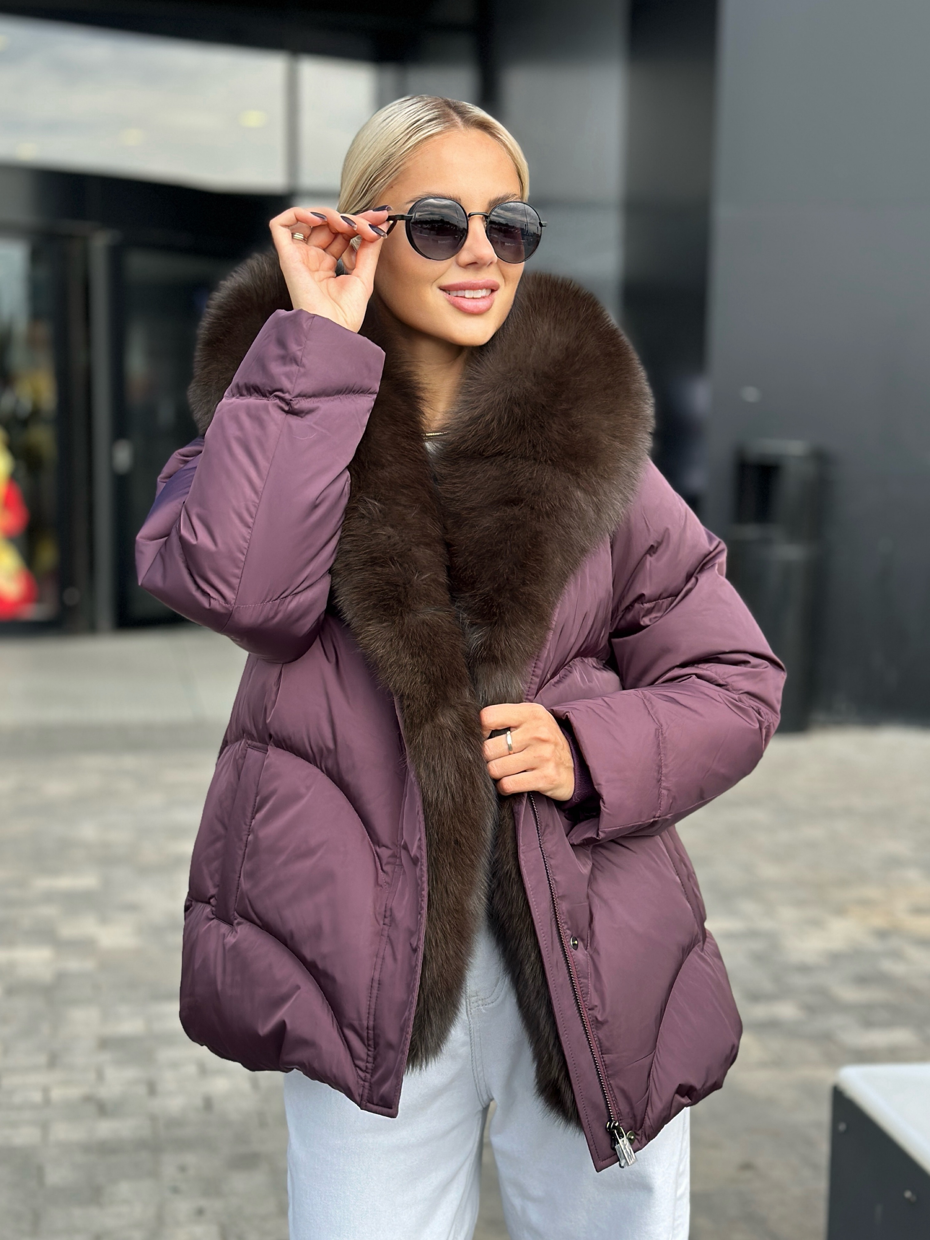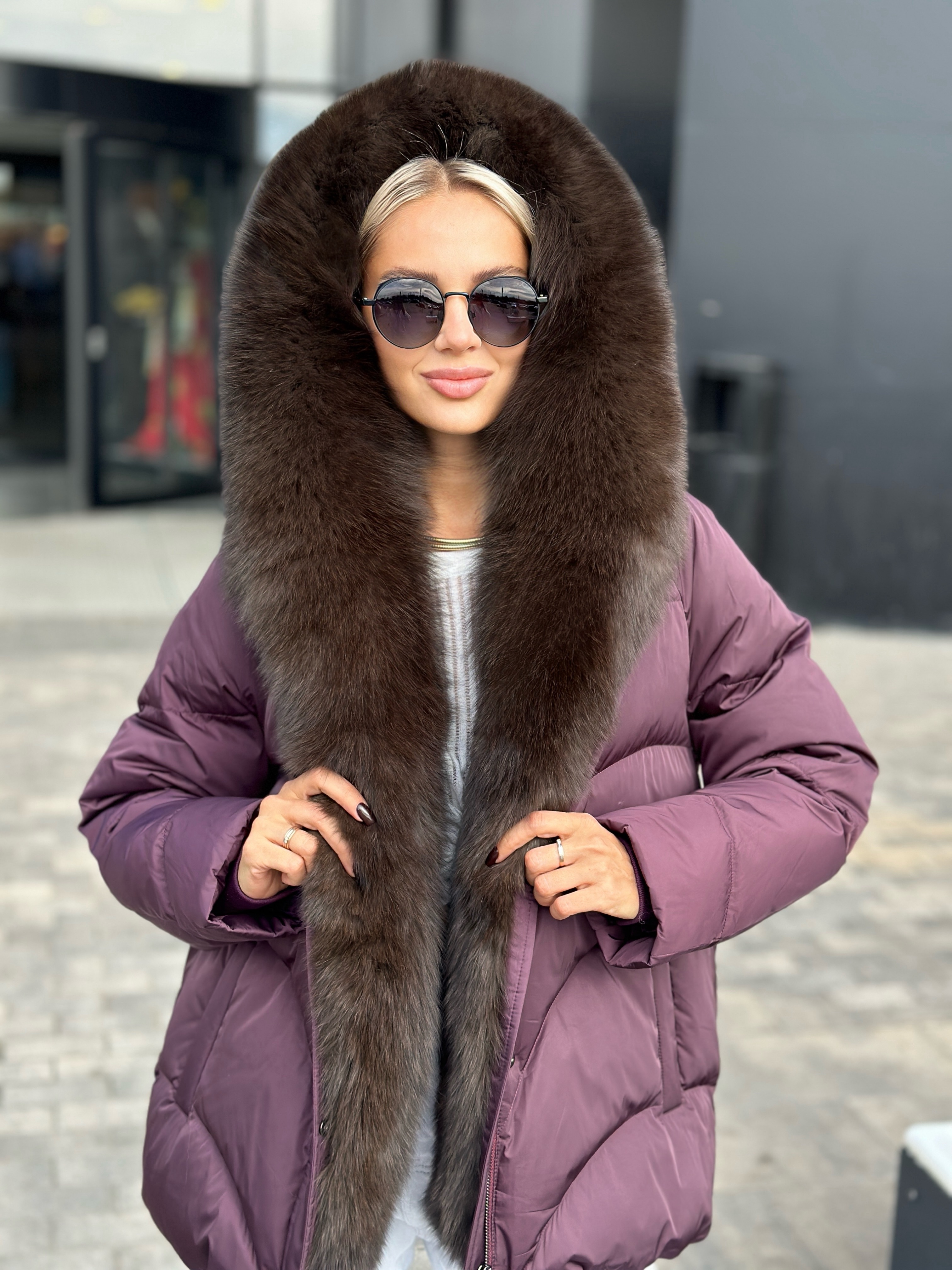 Пуховик зимний в цвете «спелая слива» с мехом финского песца 60см