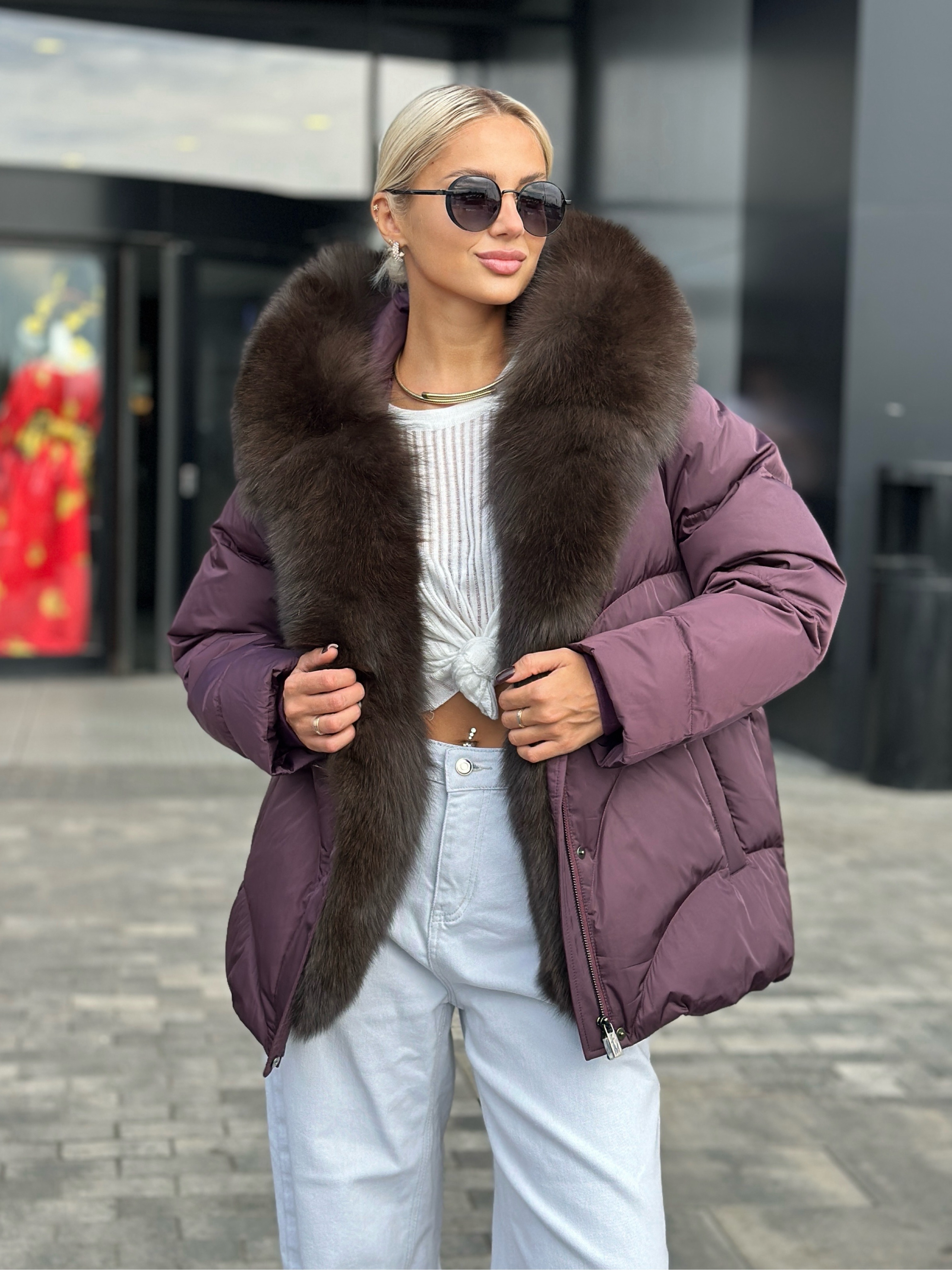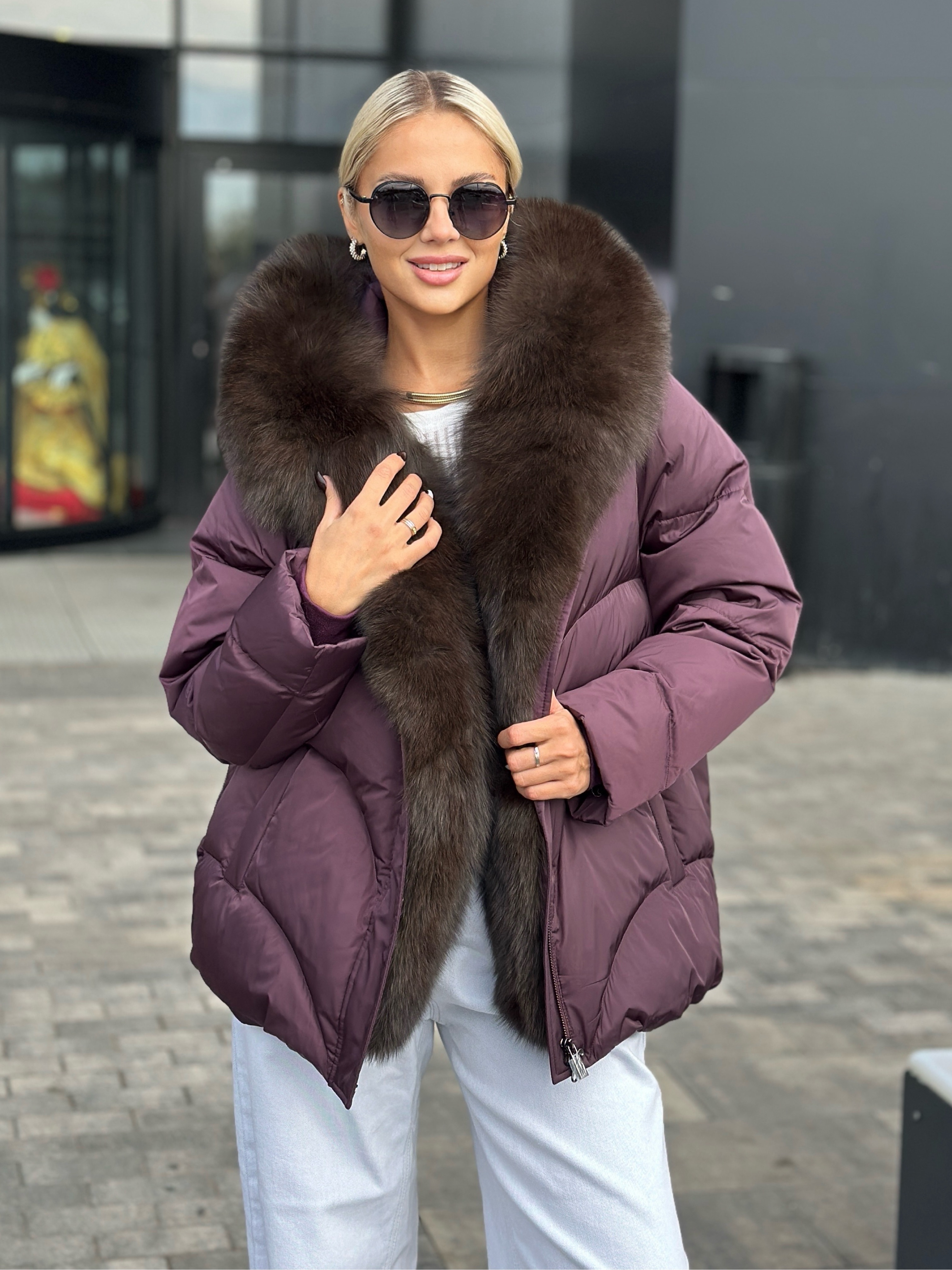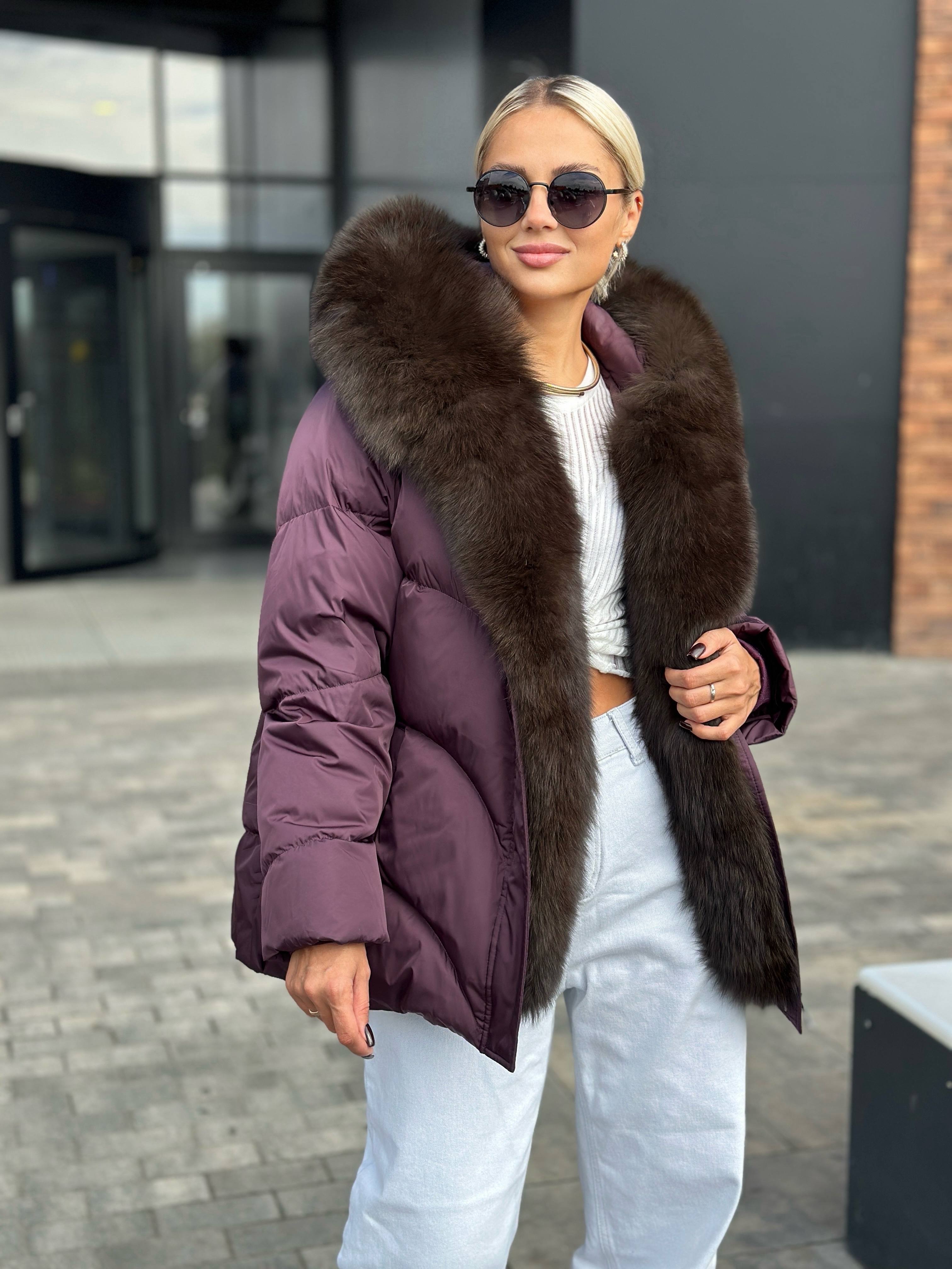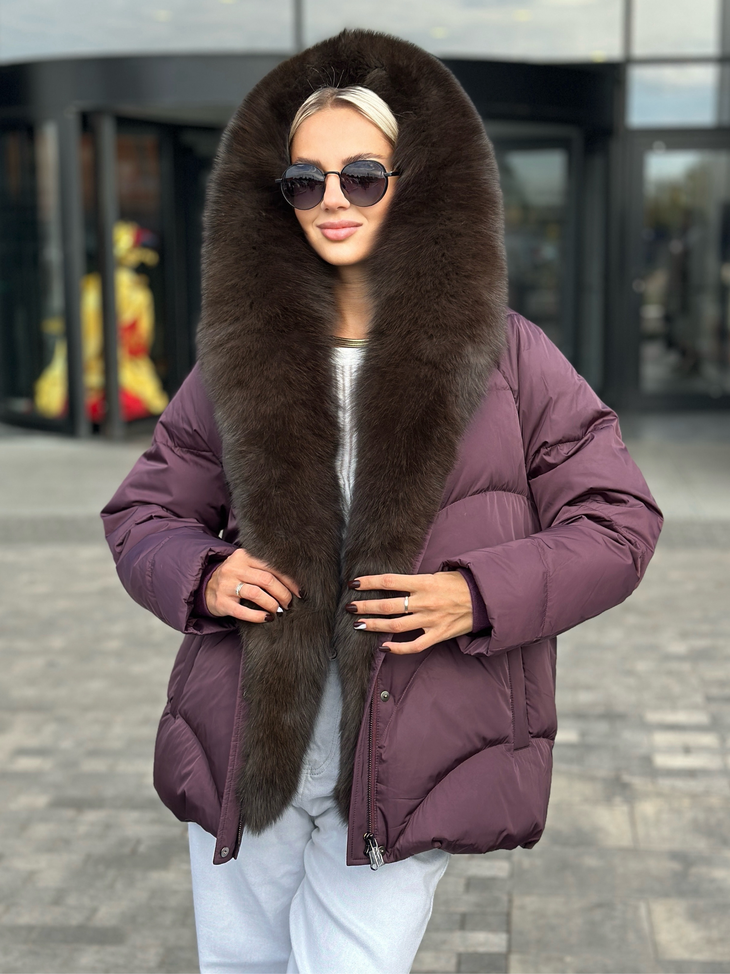 Пуховик зимний в цвете «спелая слива» с мехом финского песца 60см