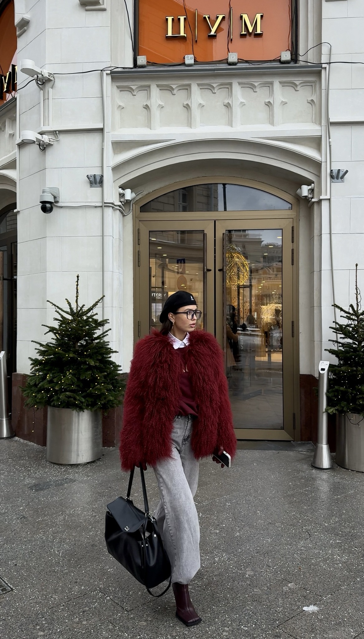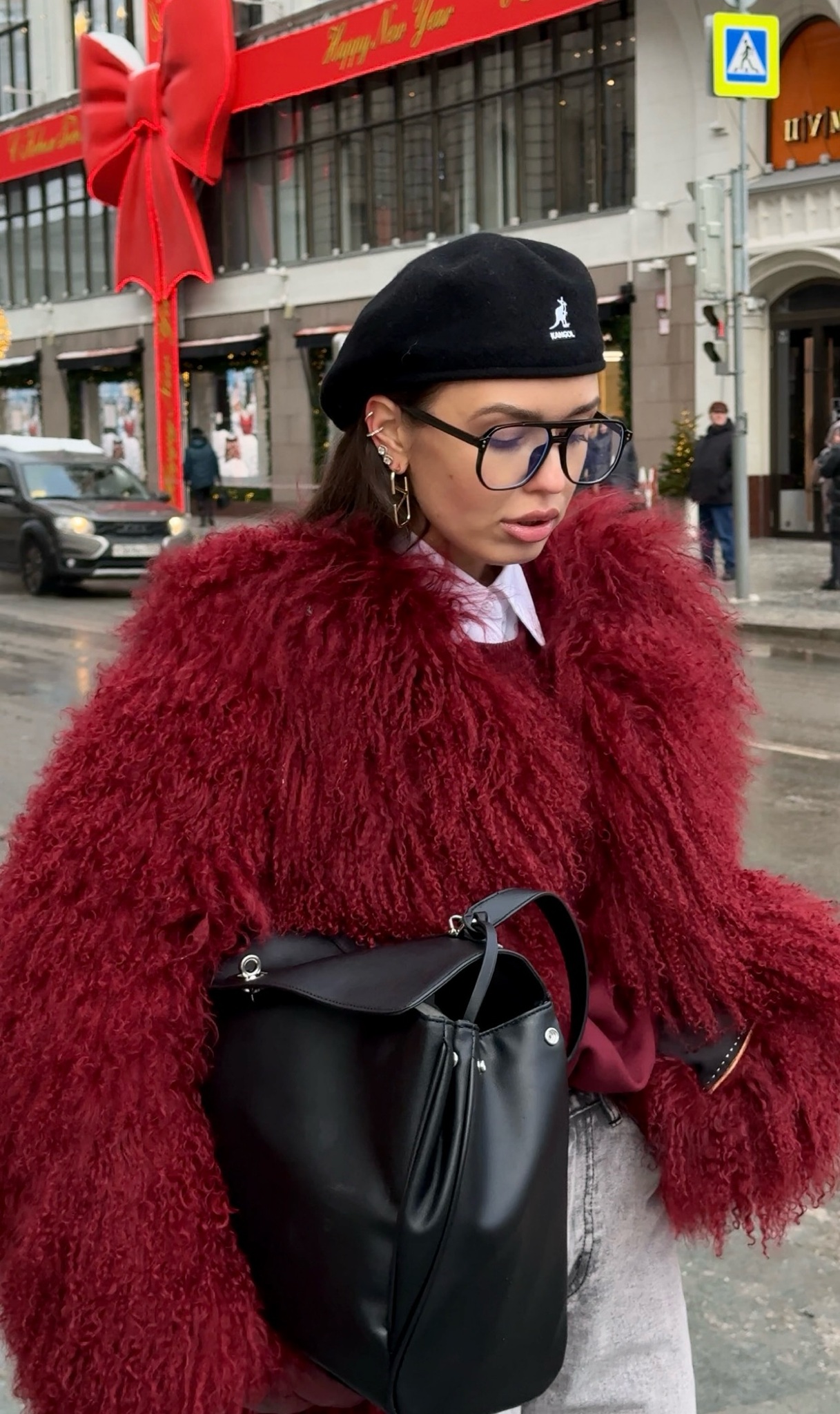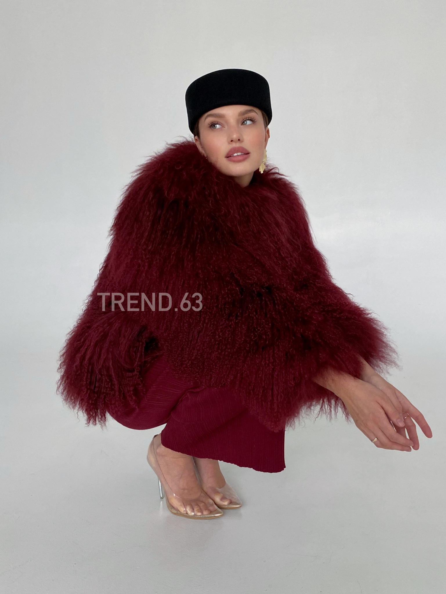 Шуба из ламы «клюква» 60см