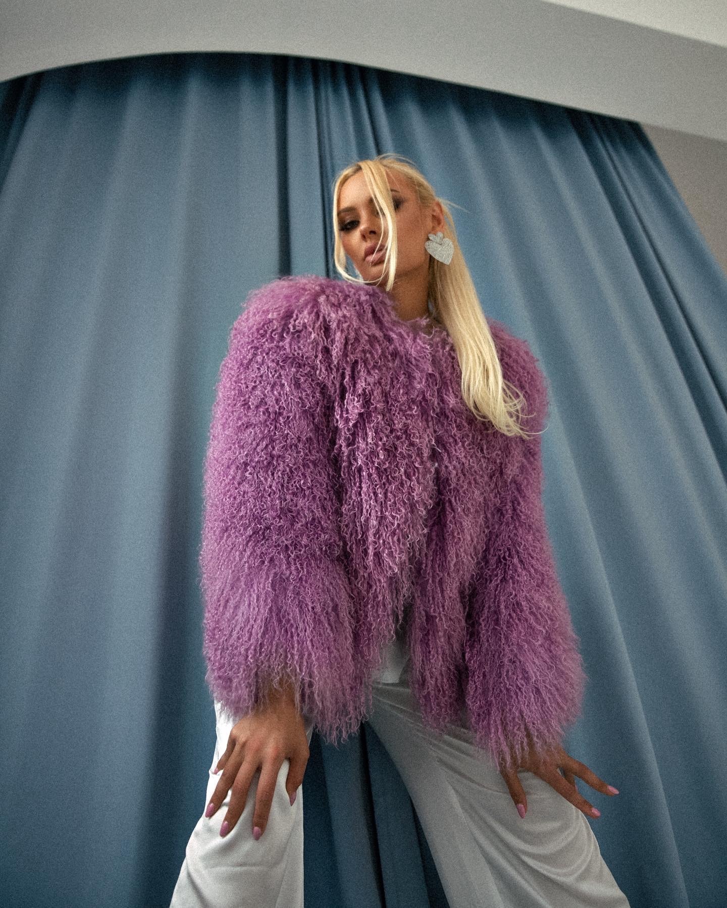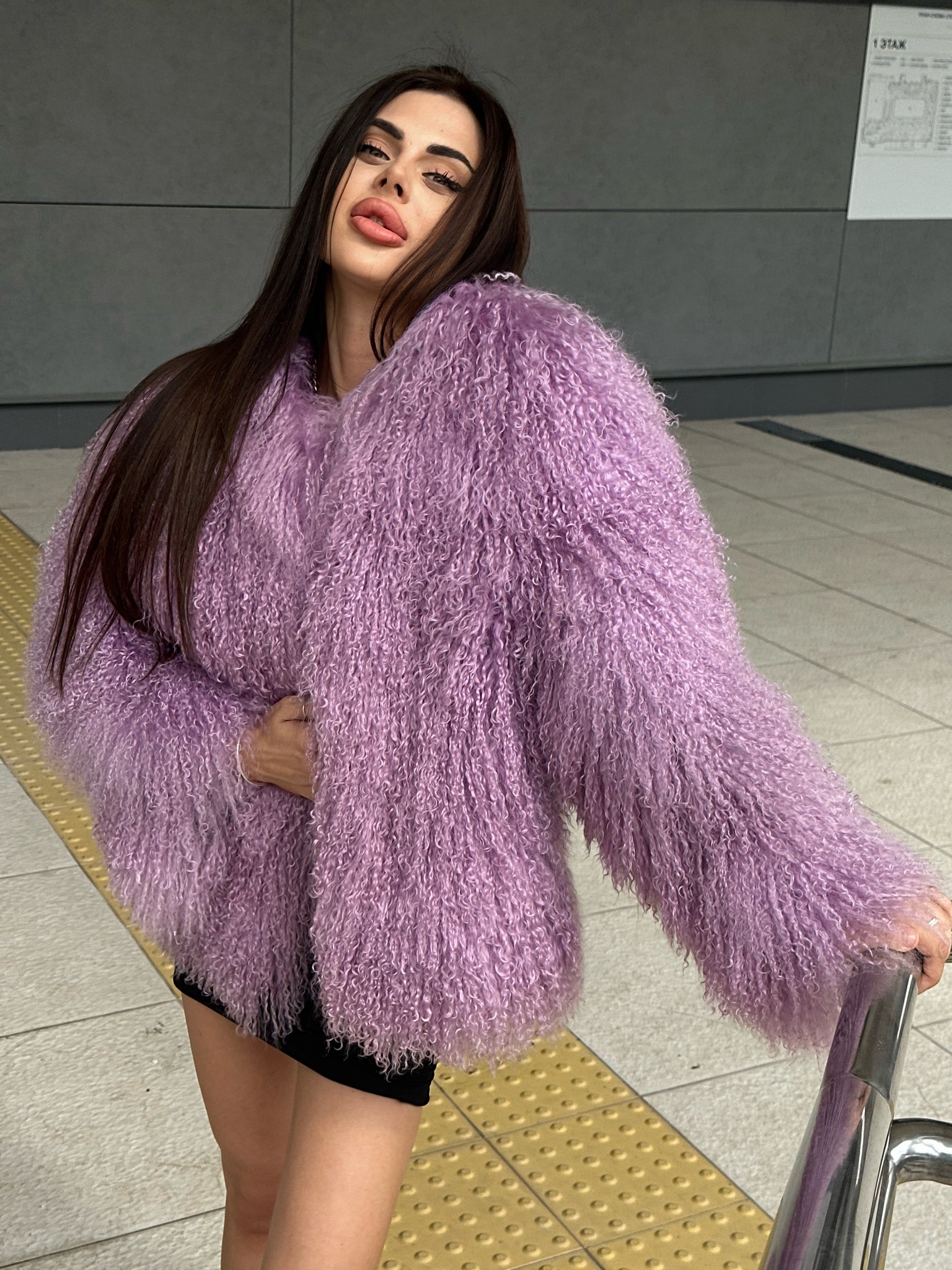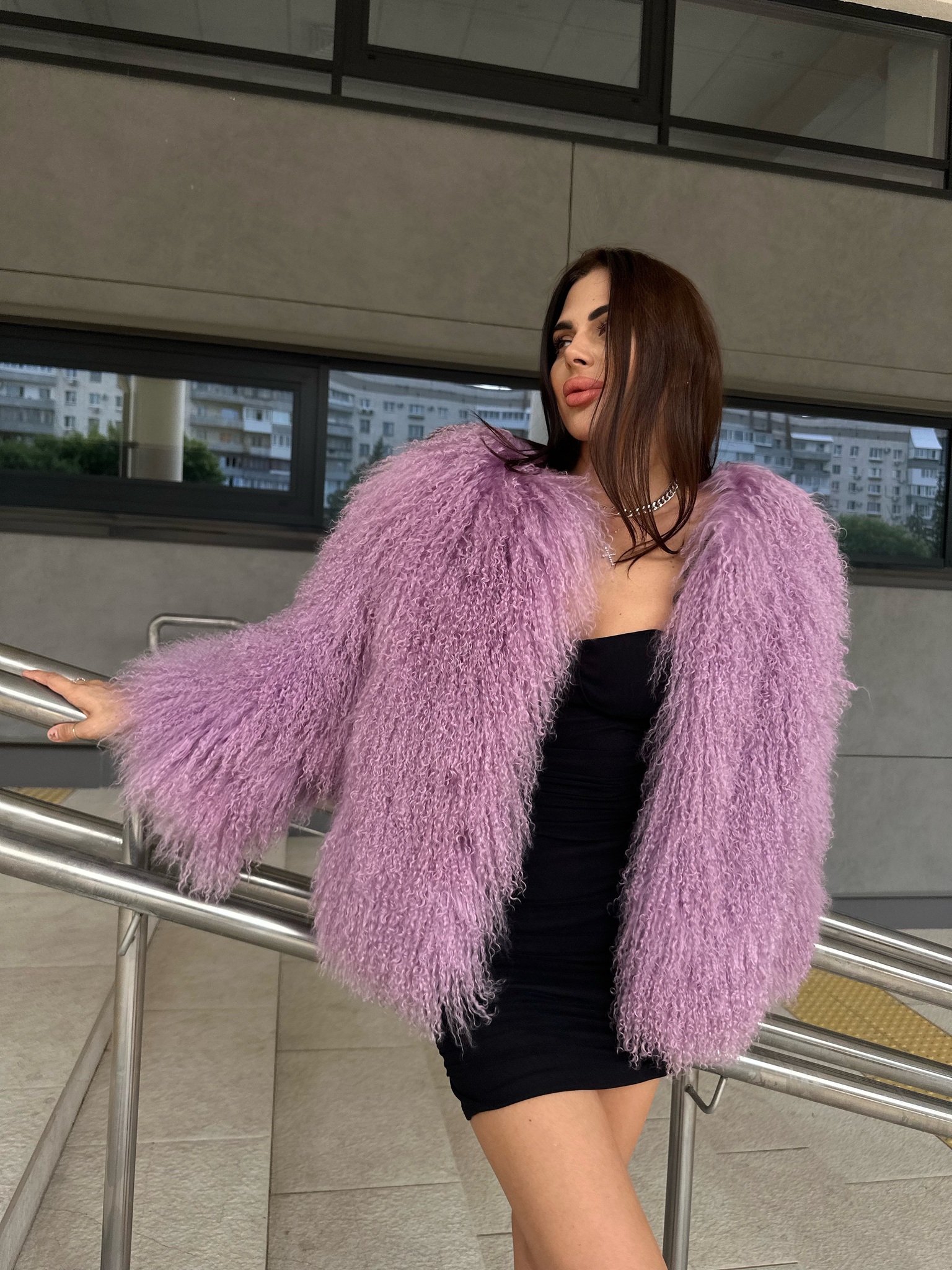 Шуба из ламы «сирень» 60см