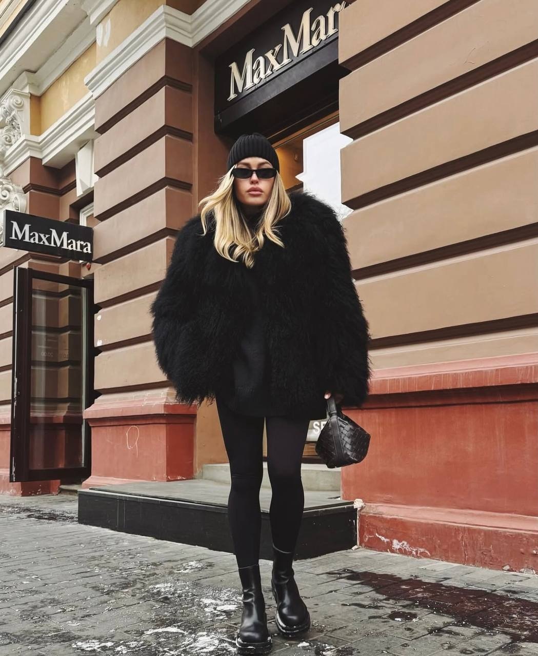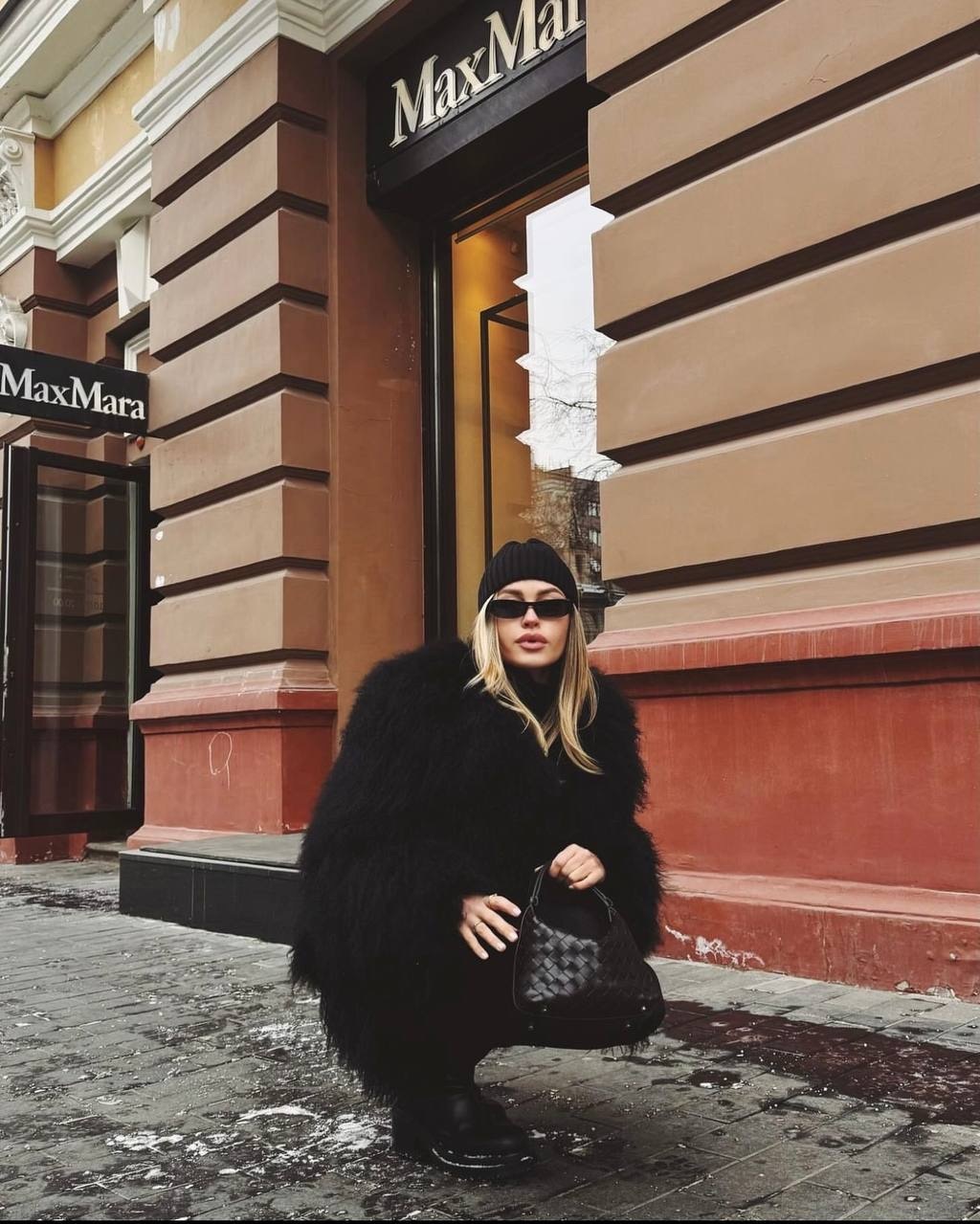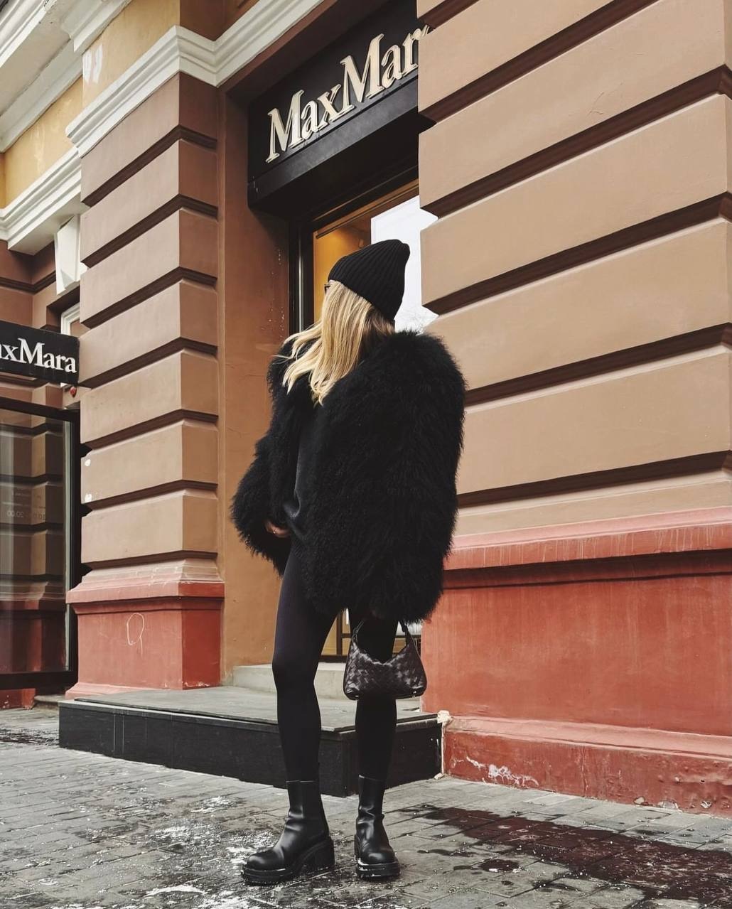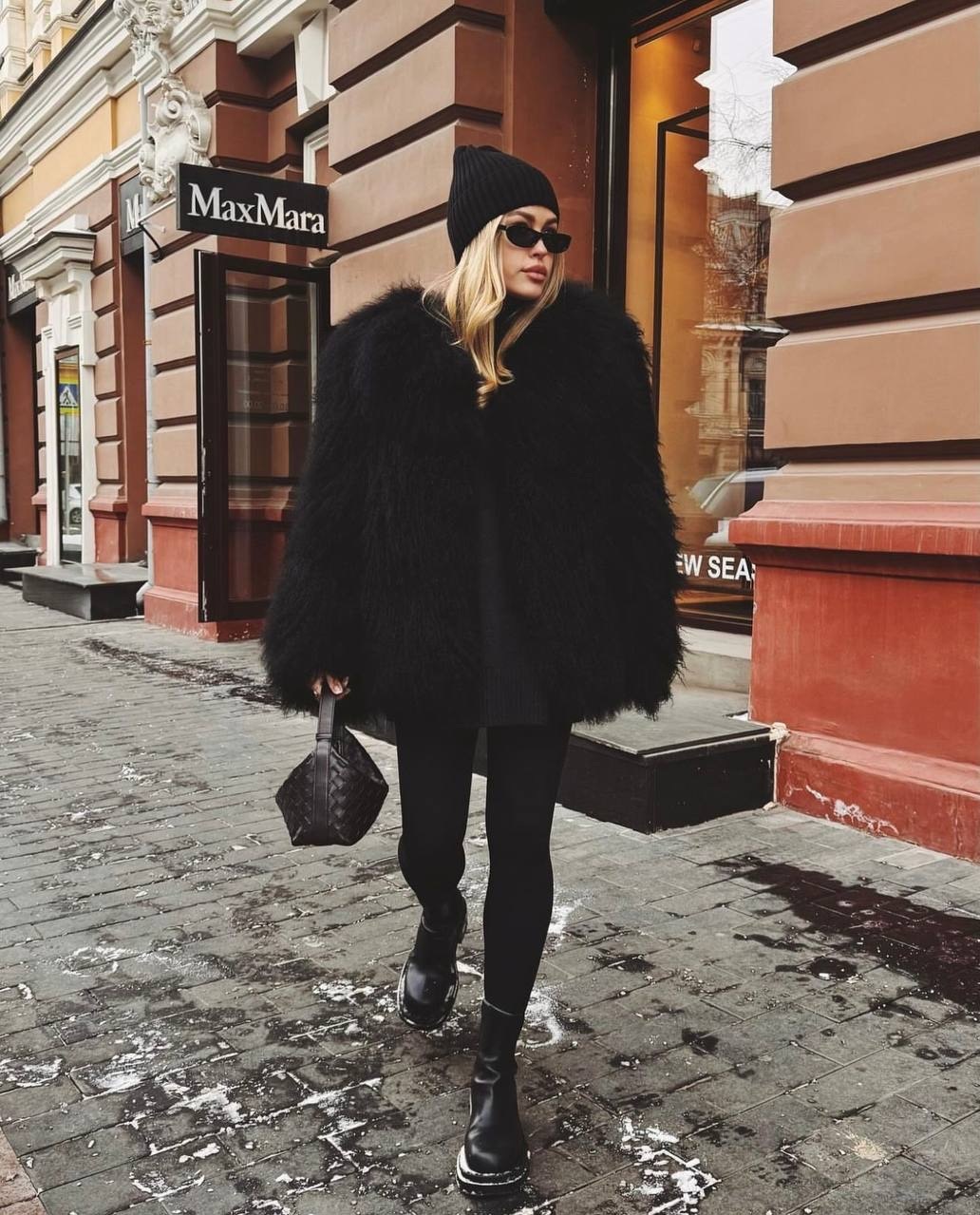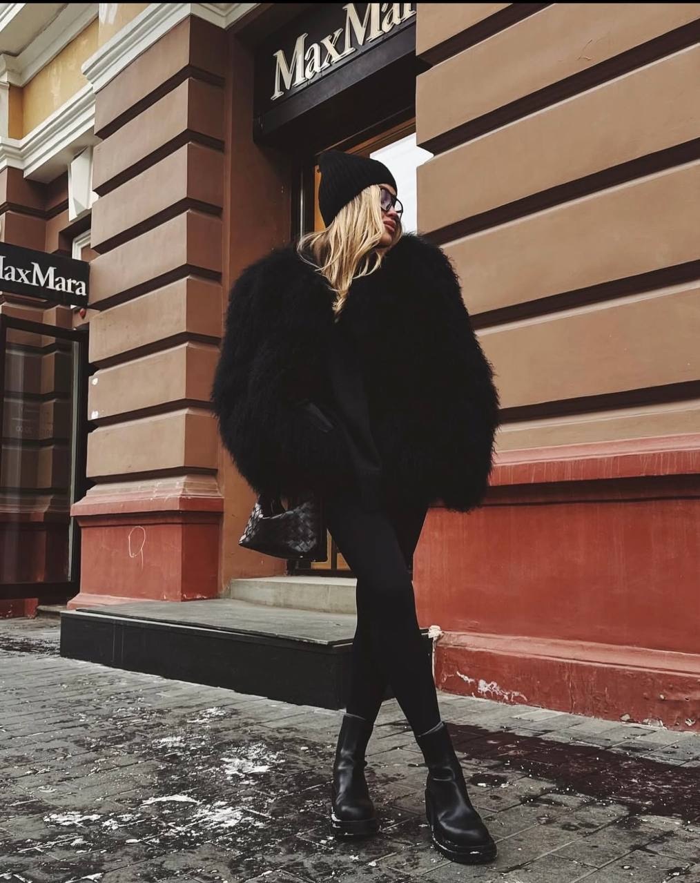 Шуба из натуральной ламы в черном цвете 60см