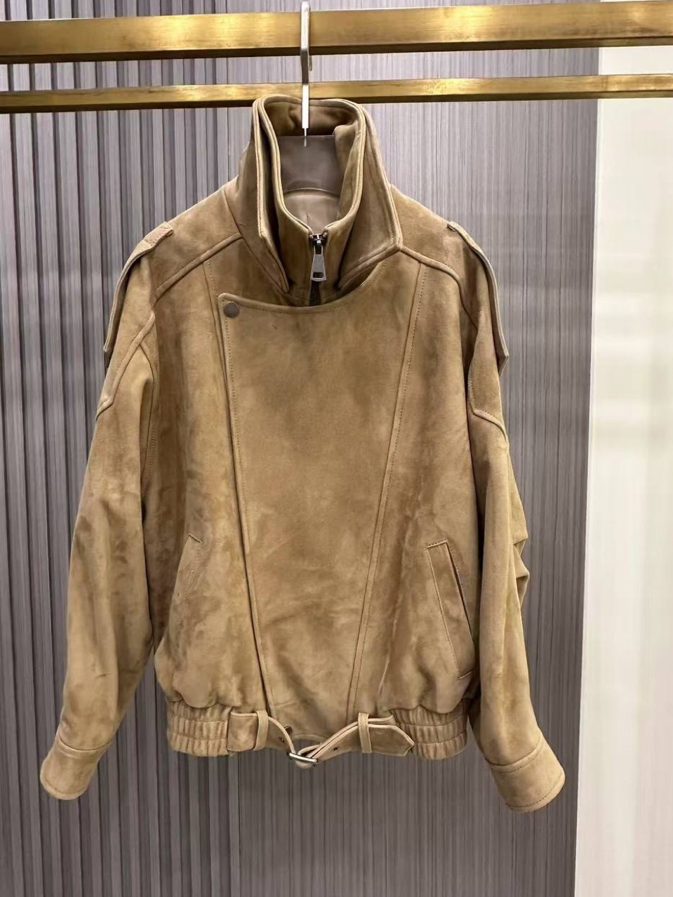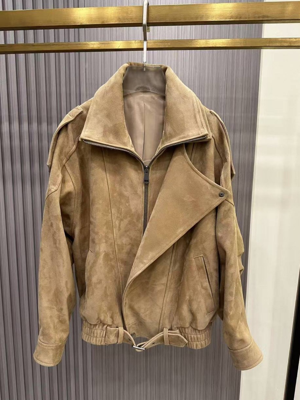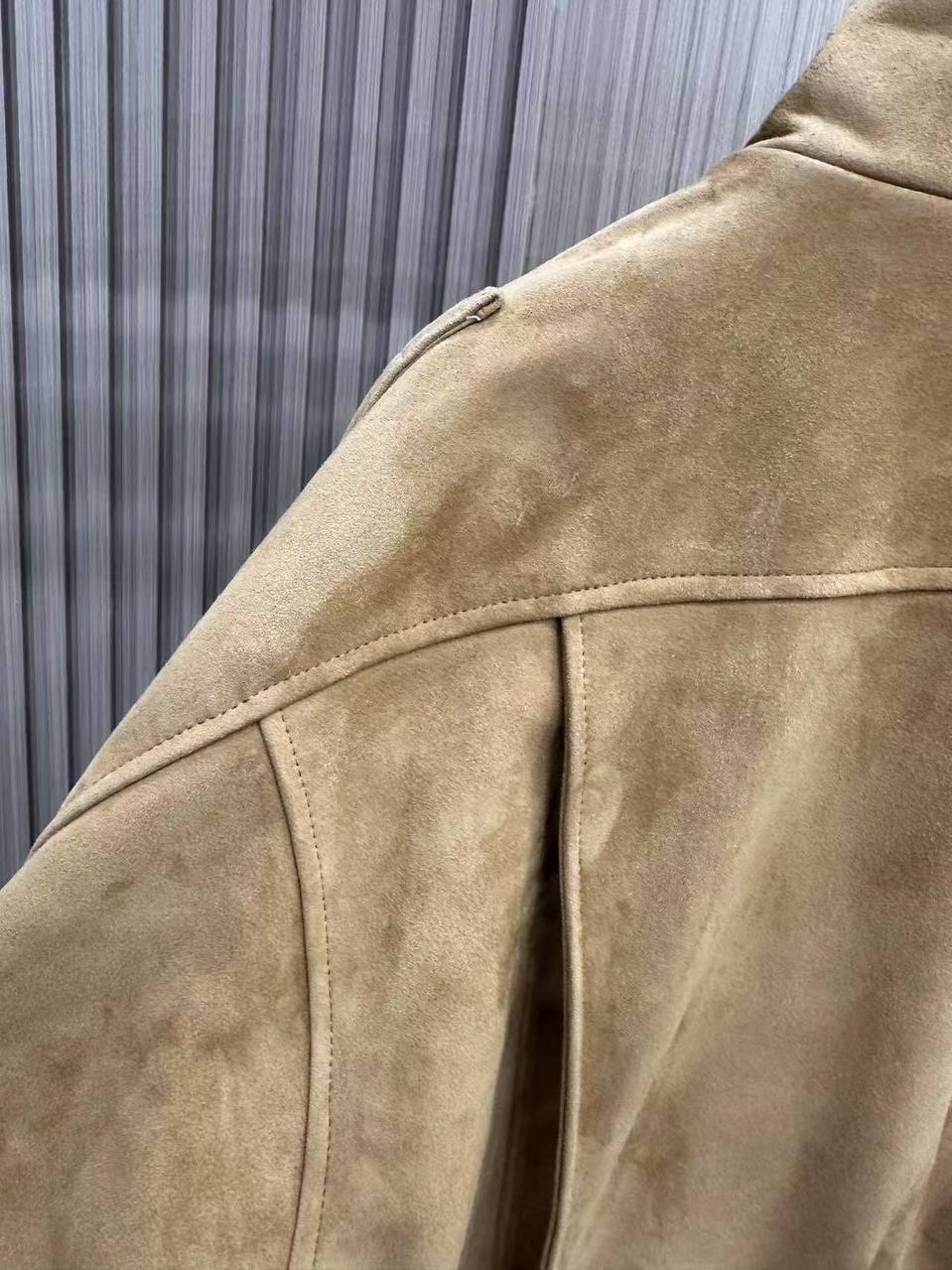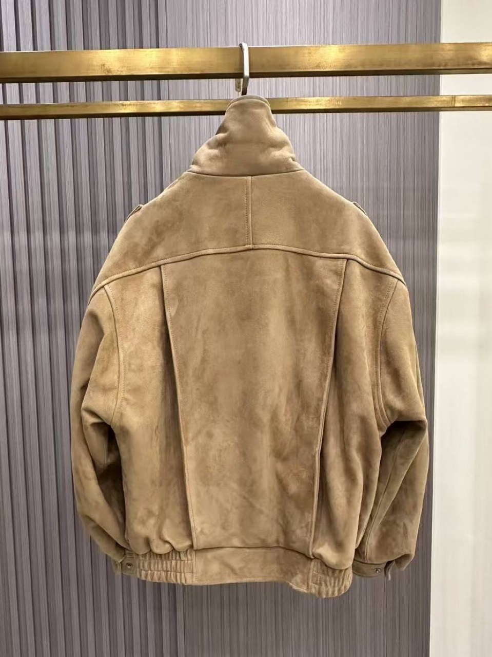 Удлинений бомбер из замши с двойным воротником «White stone»
