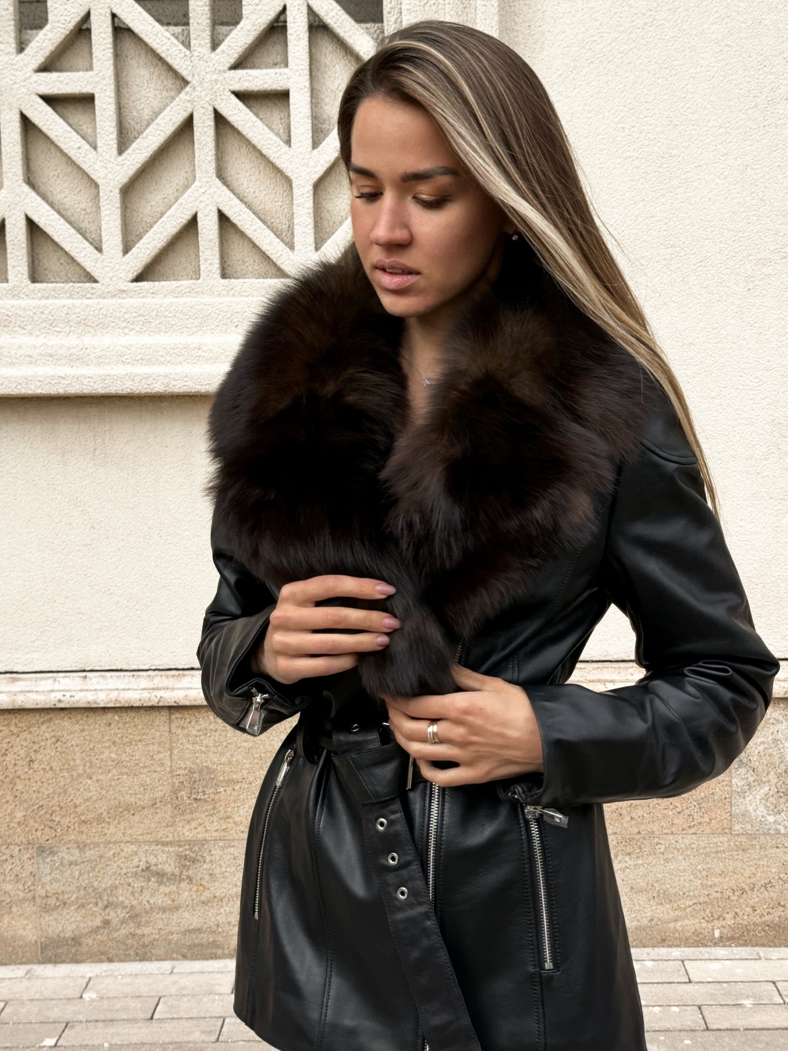 Представляем вам нашу черную кожаную куртку, которая станет неотъемлемой частью вашего гардероба. Эта уникальная куртка выполнена из высококачественной кожи